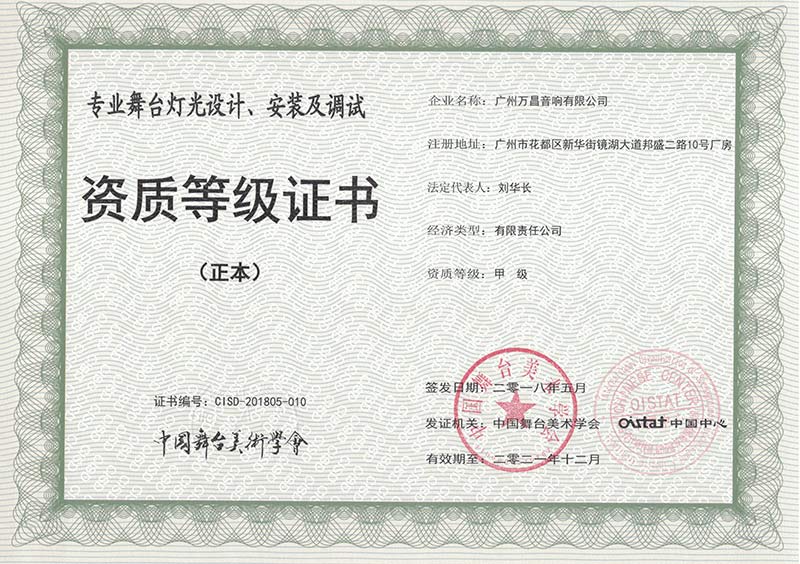 爵士龍-爵士龍-專業(yè)舞臺 音響設計、安裝及調試 資質等級證書 (正本)